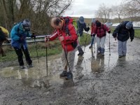 La progression est parfois difficile à cause de la boue, surtout dans les descentes. Les bâtons sont bien utiles.