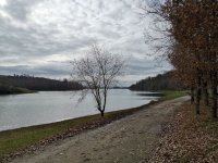 Pique-nique en terrasse au bord du lac, avec tables et bancs bien appréciables en ce jour un peu humide.